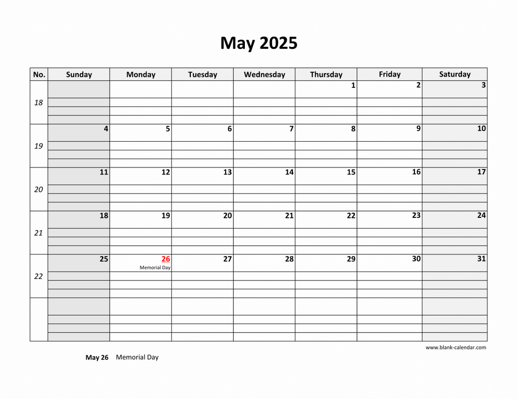 May 2025 is just around the corner, and with our lined printable calendar, you have everything you need to make it your most organized month yet. Say goodbye to chaos and hello to clarity as you map out your schedule, set goals, and track your progress with ease. Whether you’re a busy professional, a student, or a parent, our calendar is the perfect tool to help you stay on top of your commitments and make the most of every day. So why wait? Get organized, stay focused, and make May 2025 a month to remember!